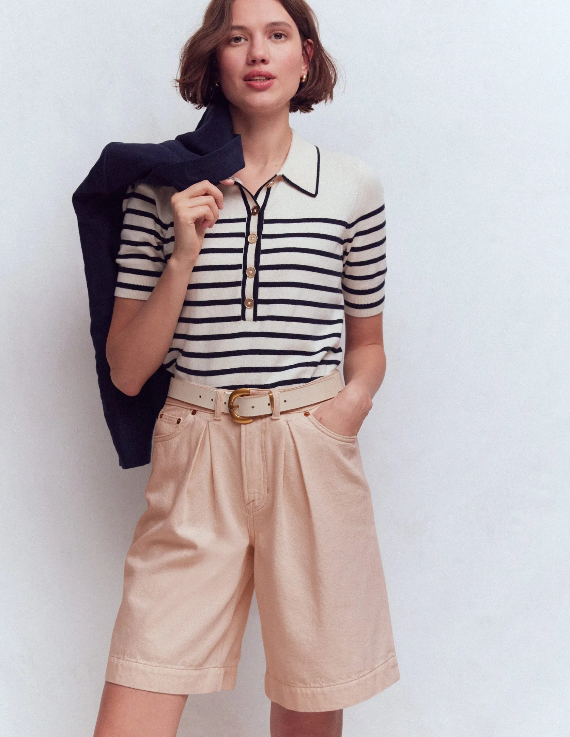 – Braguette zippée et bouton centré à la taille sur le devant