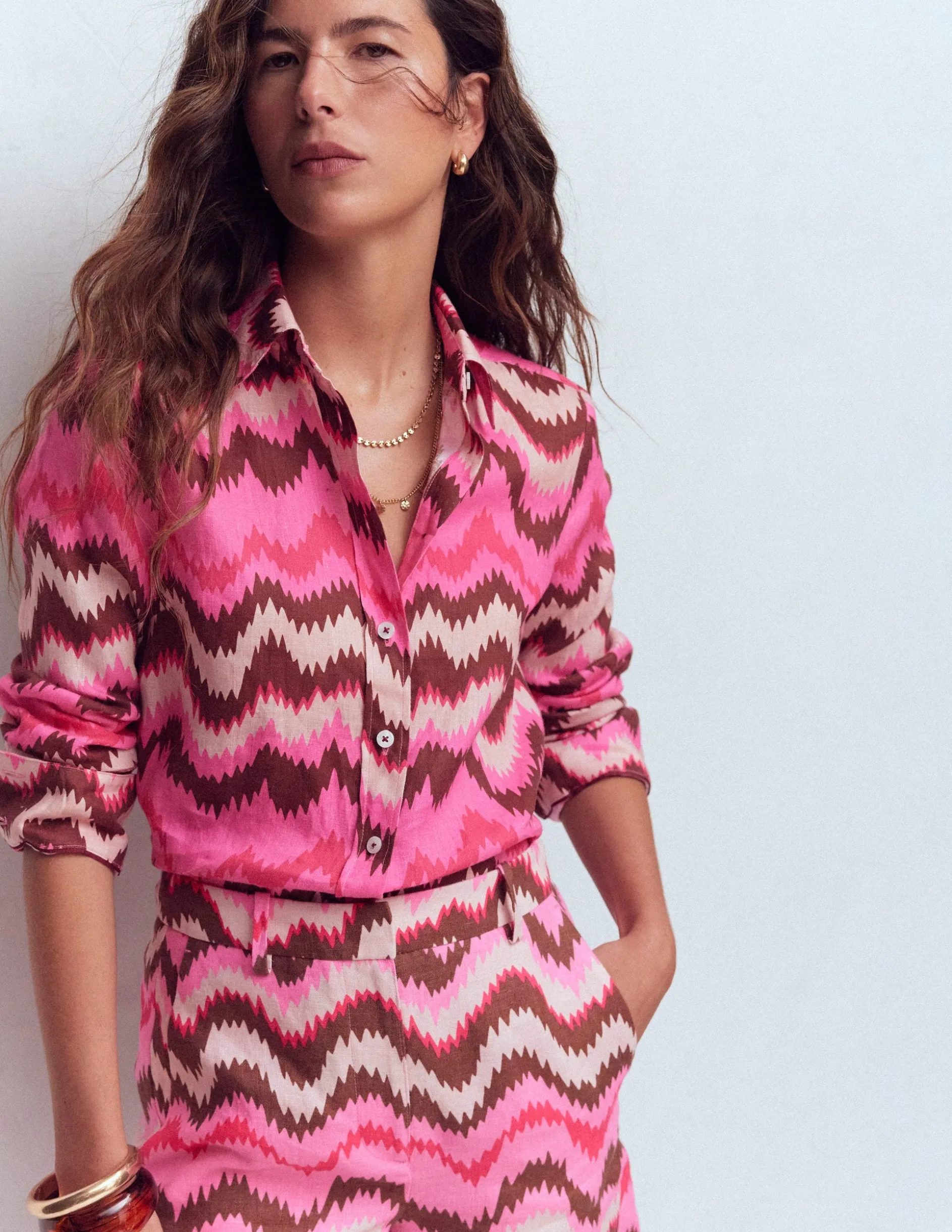 | Color | Rose puissant, motif Ikat |