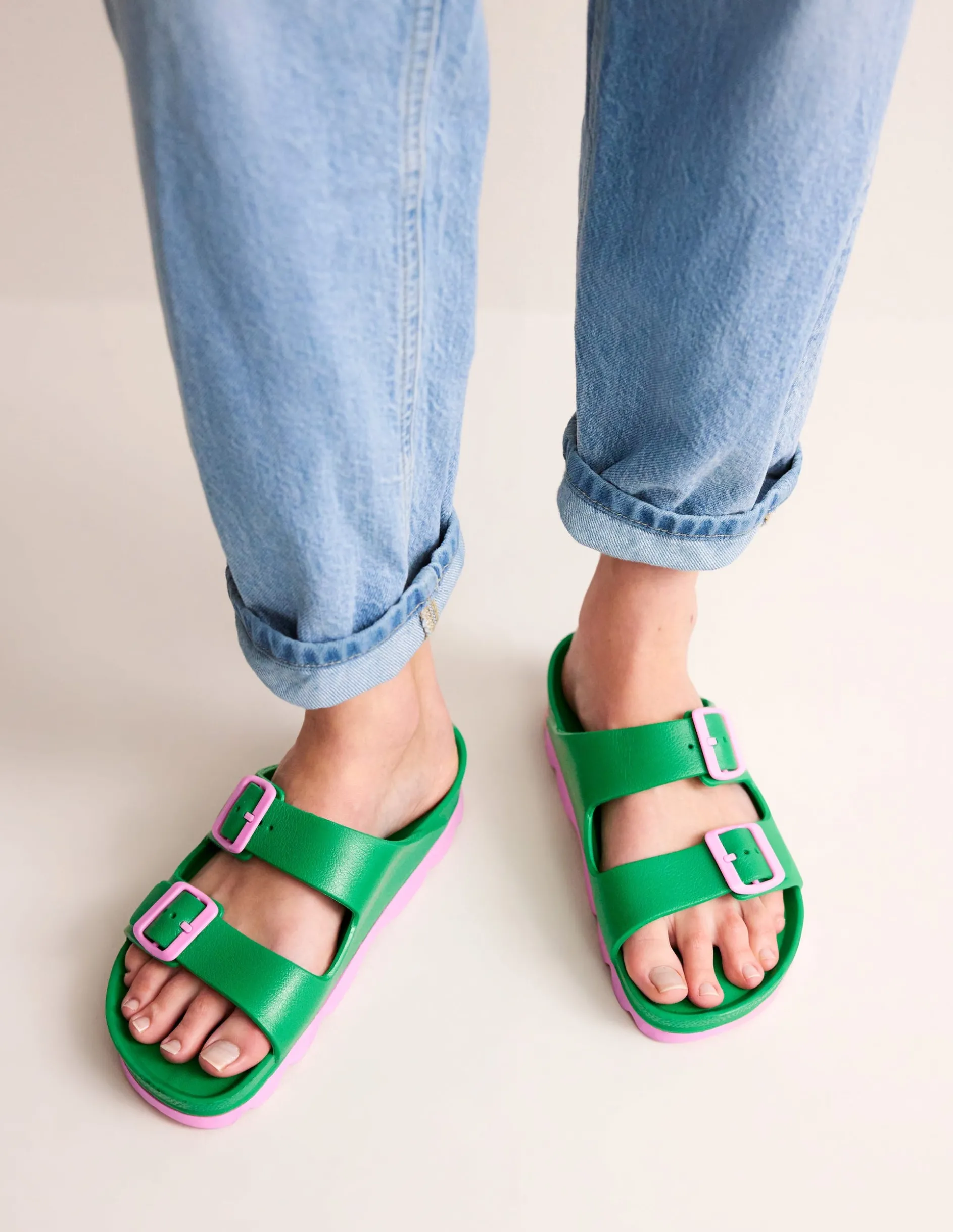 Ganz gleich, ob Sie am Wochenende auf den Bauernmarkt gehen oder im Urlaub zum Pool schlendern: diese farbenfrohen Pantoletten sind genau das Richtige für all Ihre Sommerpläne.