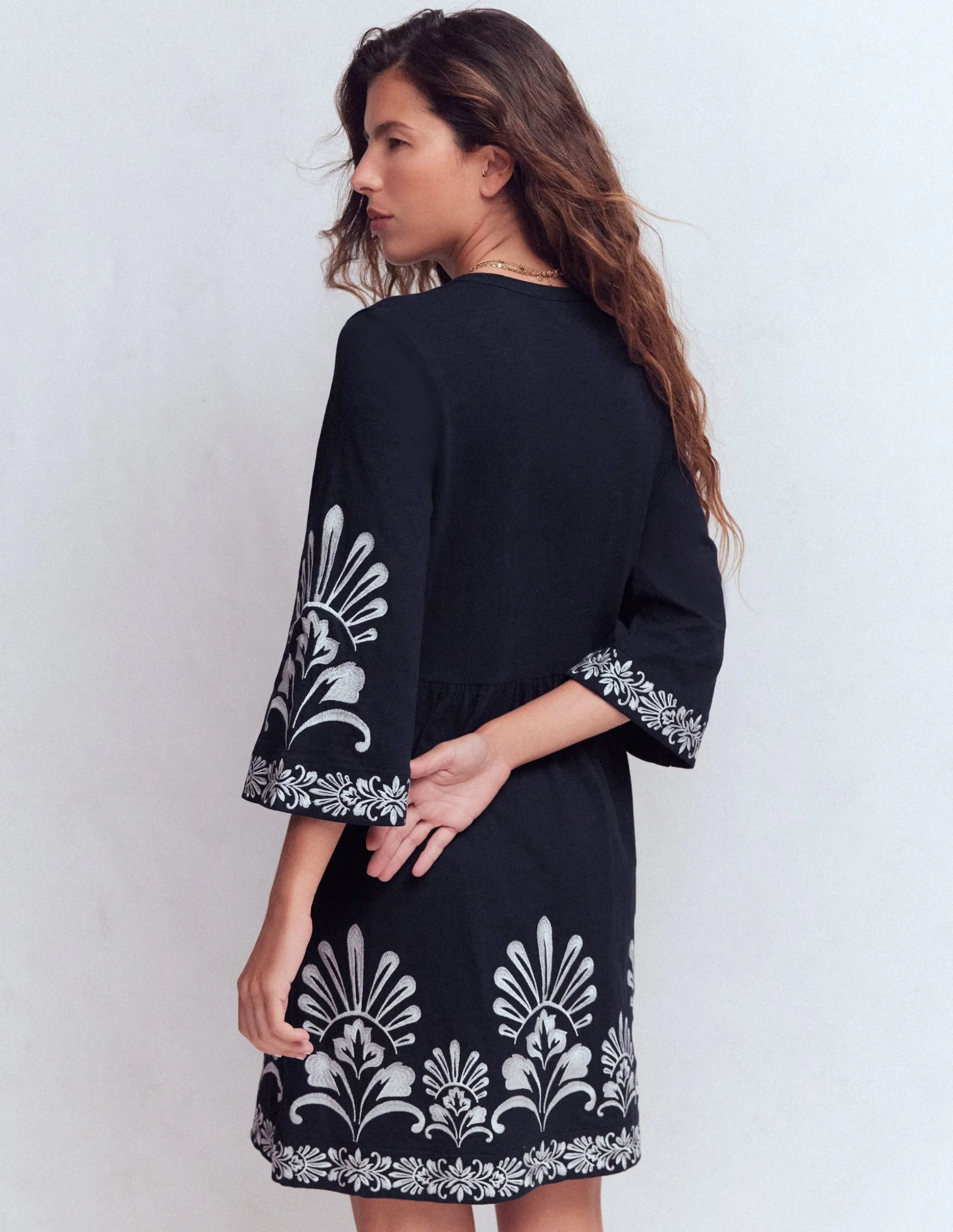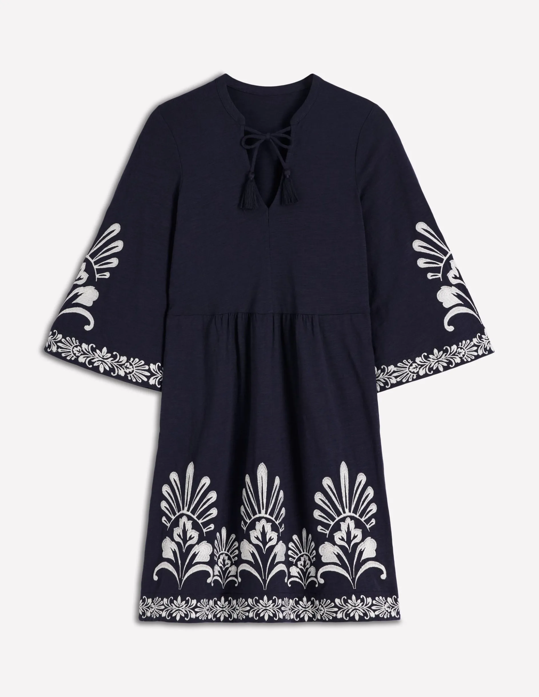 | Color | Brodé bleu marine |