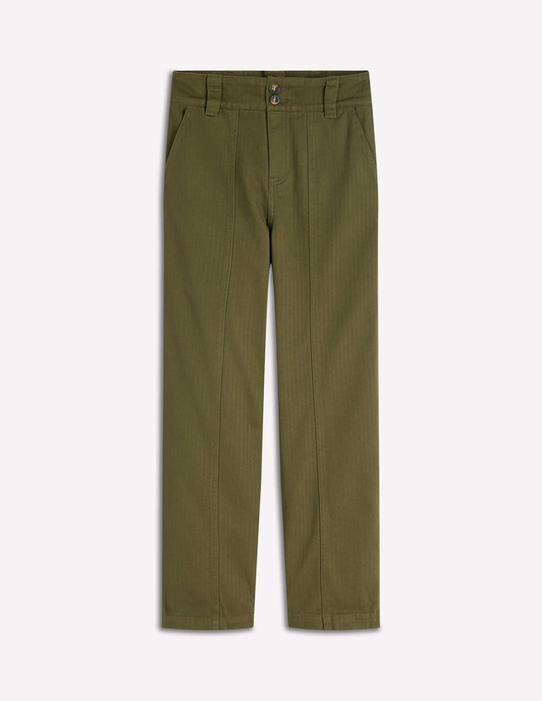 – Braguette zippée et double bouton centré à la taille sur le devant