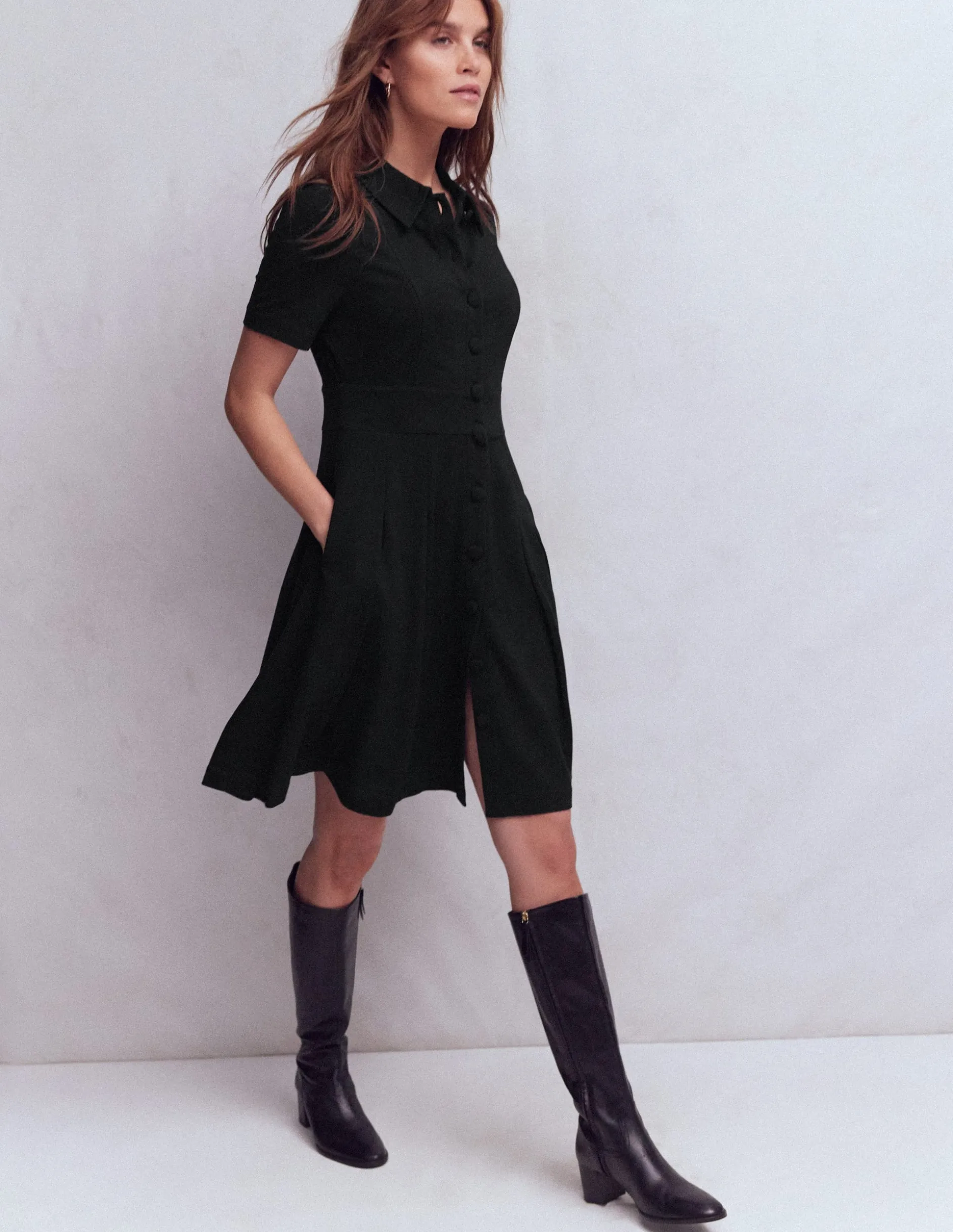 – Coupe ajustée-évasée : effet flatteur